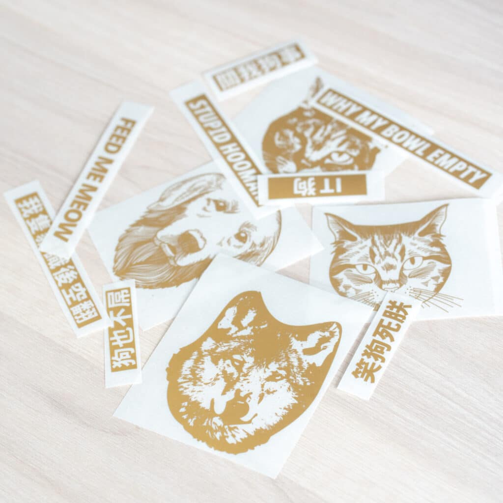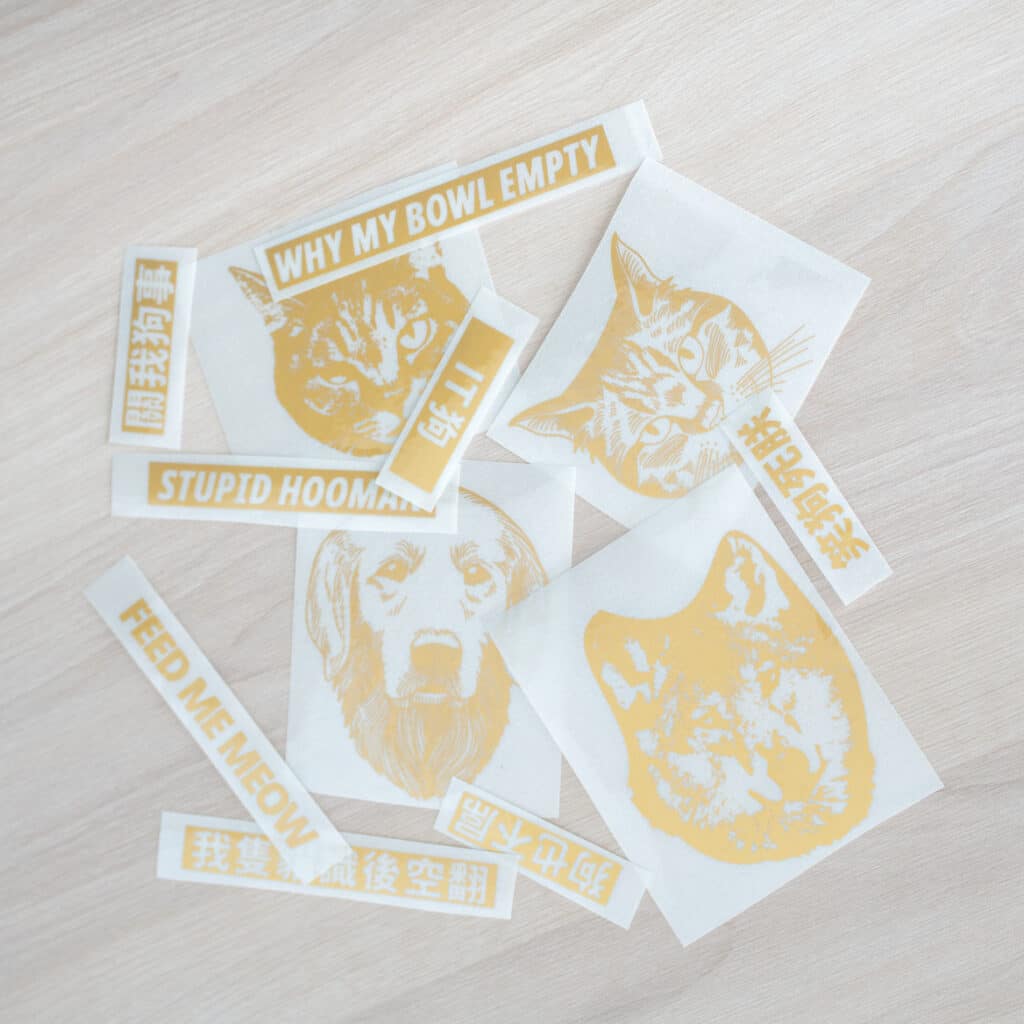 「我隻貓識後空翻」「FEED ME MEOW」「WHY MY BOWL EMPTY」「STUPID HOOMAN」